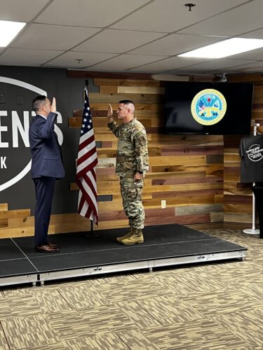 “At the end of the ceremony, the commanding officer that promoted him asked me why I had never been in uniform,” Patrick recalled. “He was a general, and he said, ‘I’ll write the letter for you if you want. You just tell me what you need.’”